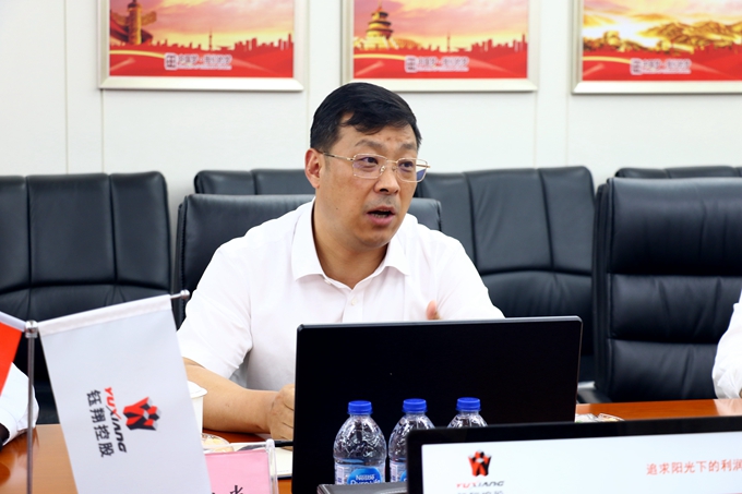 趙旭光副董事長對趙永副局長一行的蒞臨表示熱烈歡迎,對崇明區人社局及各位領導對鈺翔控股集團的大力支持表示感謝,詳細介紹了鈺翔控股集團的發展歷史,詳細說明了集團目前“建材產業+互聯網”的戰略,并希望崇明區人社局在人才引進落戶、人才政策扶持等多方面給與企業大力支持,助力崇明區企業更好發展。