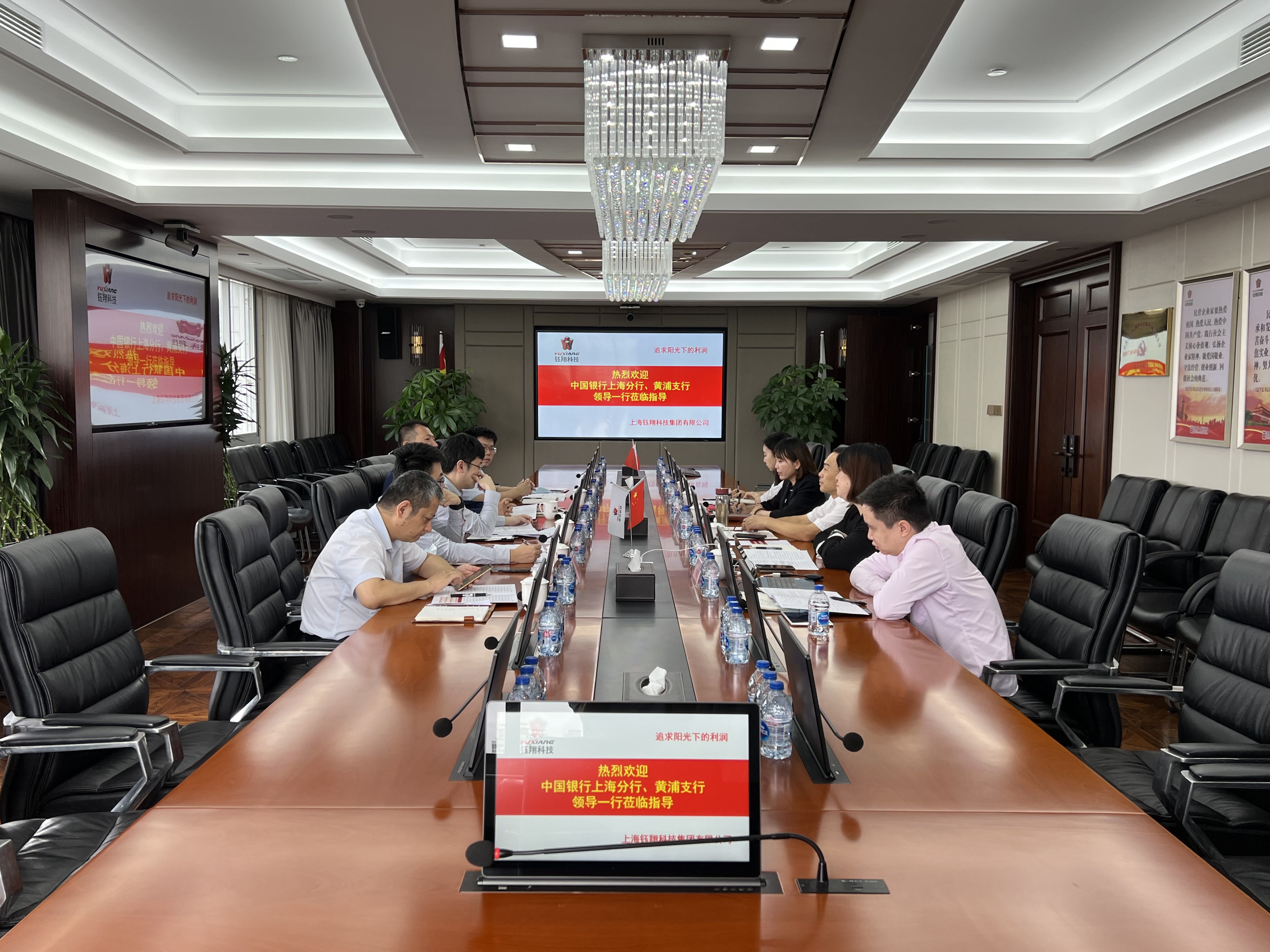 2022年8月31日上午,中國銀行上海分行普惠金融事業部周禕敏副總經理、普惠金融事業部與場景拓展團隊主管周夢奇經理、中國銀行上海分行黃浦支行副行長丁曉波一行蒞臨鈺翔科技集團考察。鈺翔科技集團董事長桂益民、集團財務資金部副經理顧圓圓、集團融資經理閔捷等領導出席本次會議。